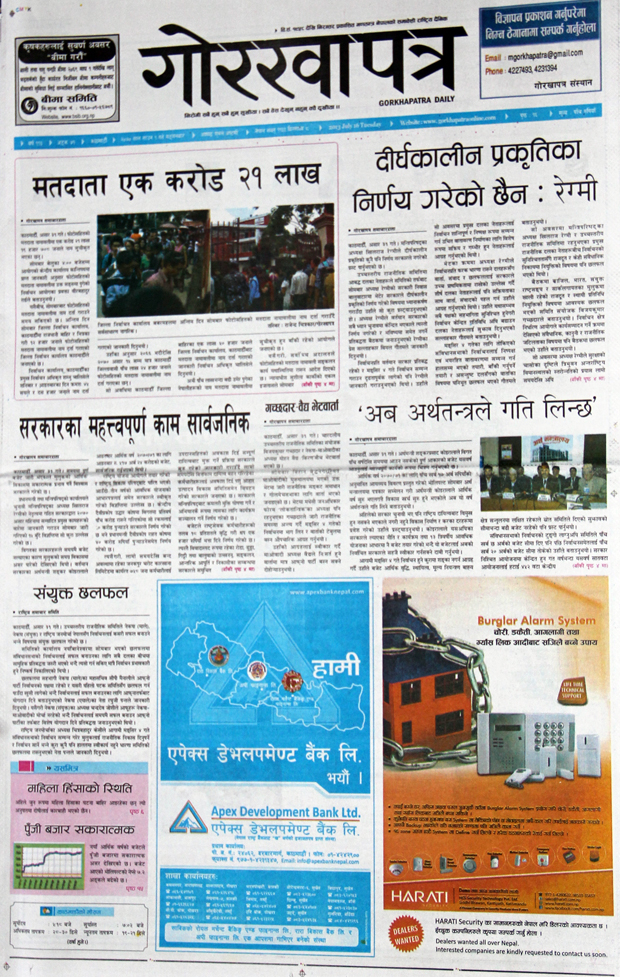 रेग्मीलाई दीर्घकालीन प्रकृतिका निर्णय नगर्न शीर्ष दलका नेताहरुले शुझाव दिएको खबरलाई राजधानी दैनिकले मुख्य रुपमा छापेको छ भने चीनले छिमेकीलाई हस्तक्षेप गर्दैनौ भनेको खबर अन्नपूर्ण पोष्टले प्रमुखताका साथ छापेको छ ।